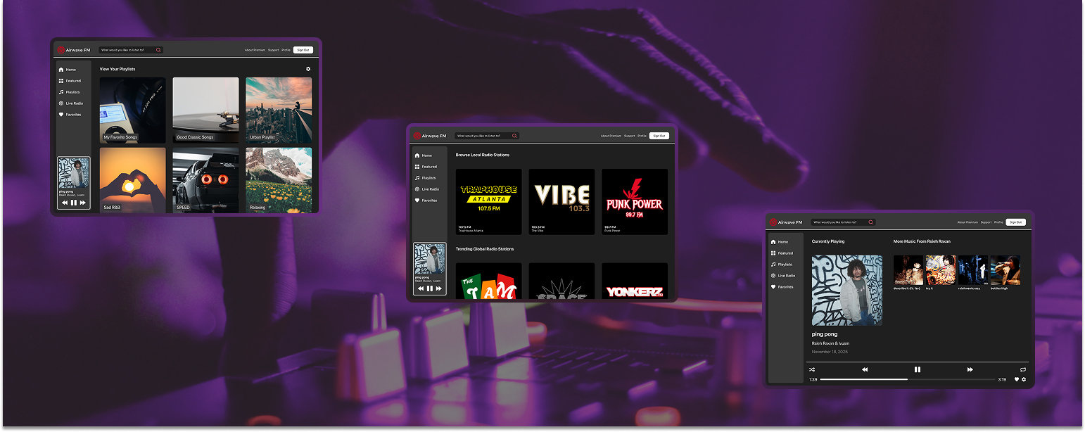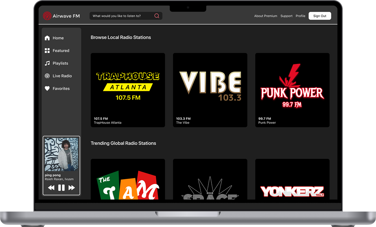 The goal of this project was to design a series of screens for a music streaming web app. In addition to creating three main screens, I aimed to design six unique radio station logos, showcasing both interface design and visual branding skills.